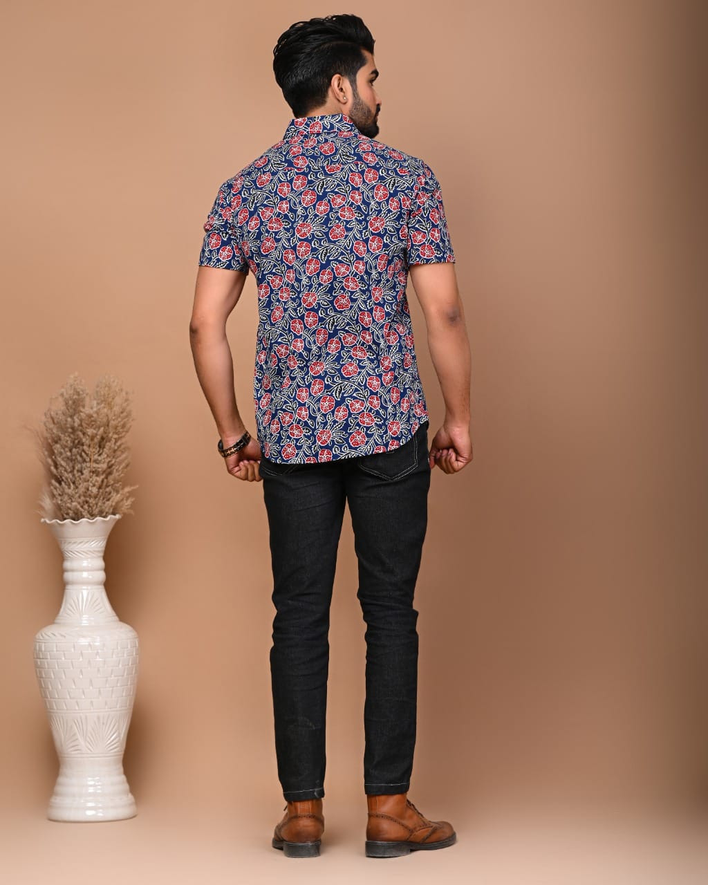 This eye-catching couple's set marries traditional artistry with contemporary casual wear, featuring a striking hand block printed pattern in deep blue and vibrant red on a comfortable cotton base. The design celebrates the heritage of Indian textiles while offering a modern, coordinated look for stylish pairs.